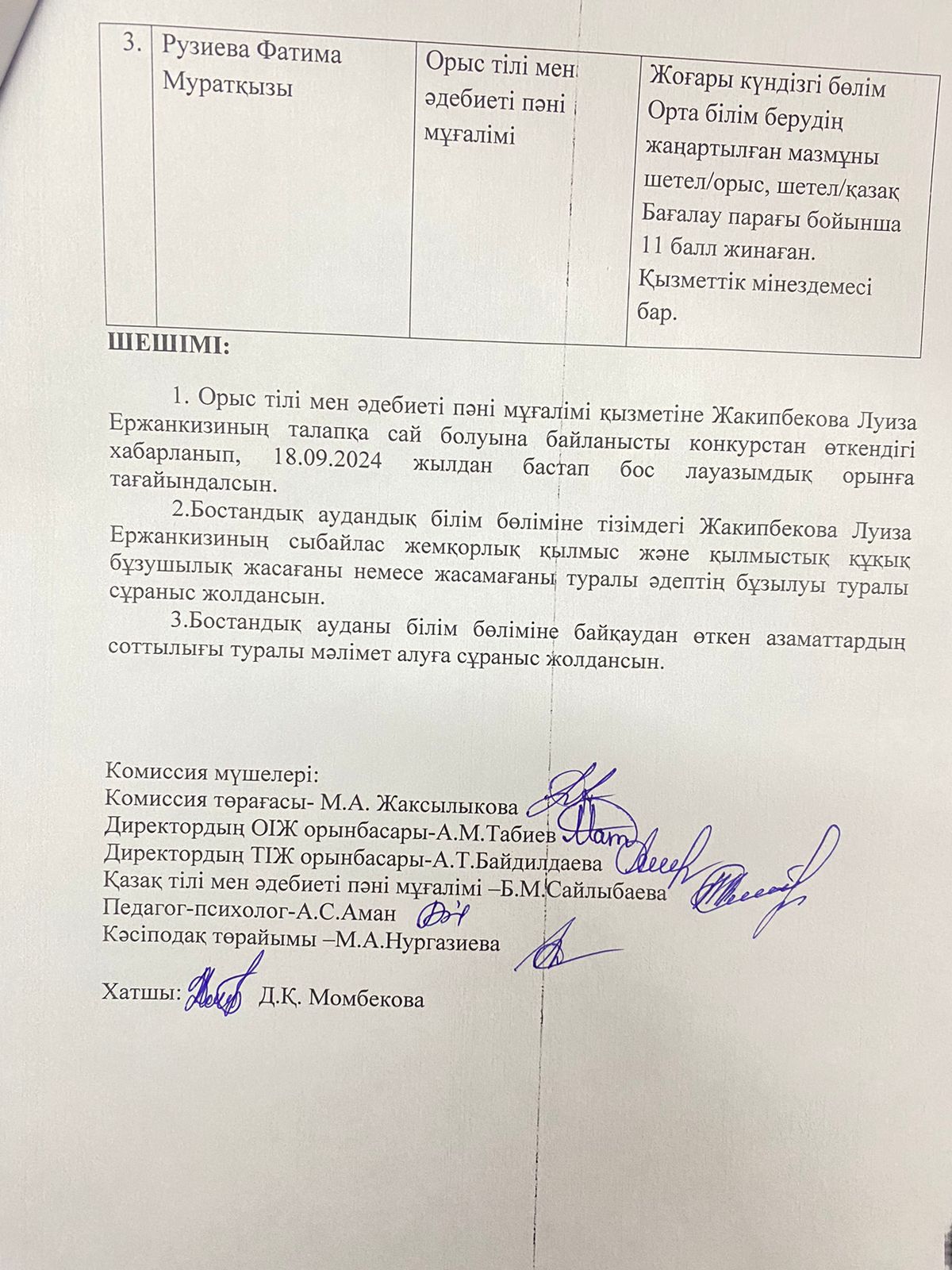 Жұмысқа қабылдау туралы