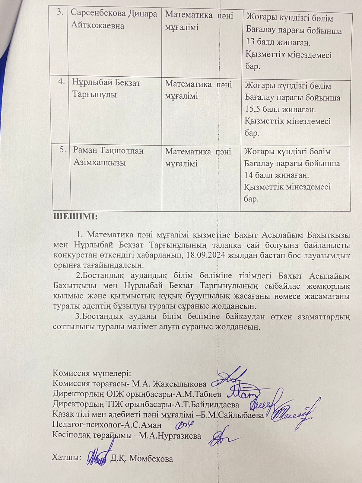 Жұмысқа қабылдау туралы