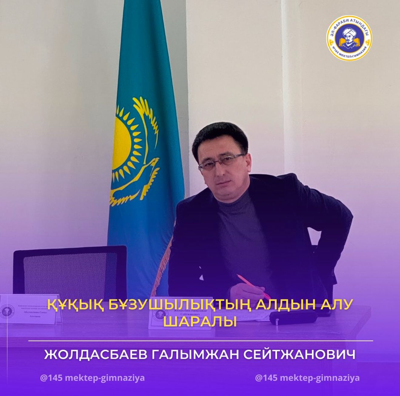 Бүгін 8-10 сынып оқушылары үшін полиция полковнигі Жолдасбаев Ғалымжан Сейтжановичпен маңызды кездесу өтті. Кездесудің басты мақсаты – жасөспірімдер арасында құқық бұзушылықтың алдын алу, заң талаптарын түсіндіру және жауапкершілікті сезіндіру.