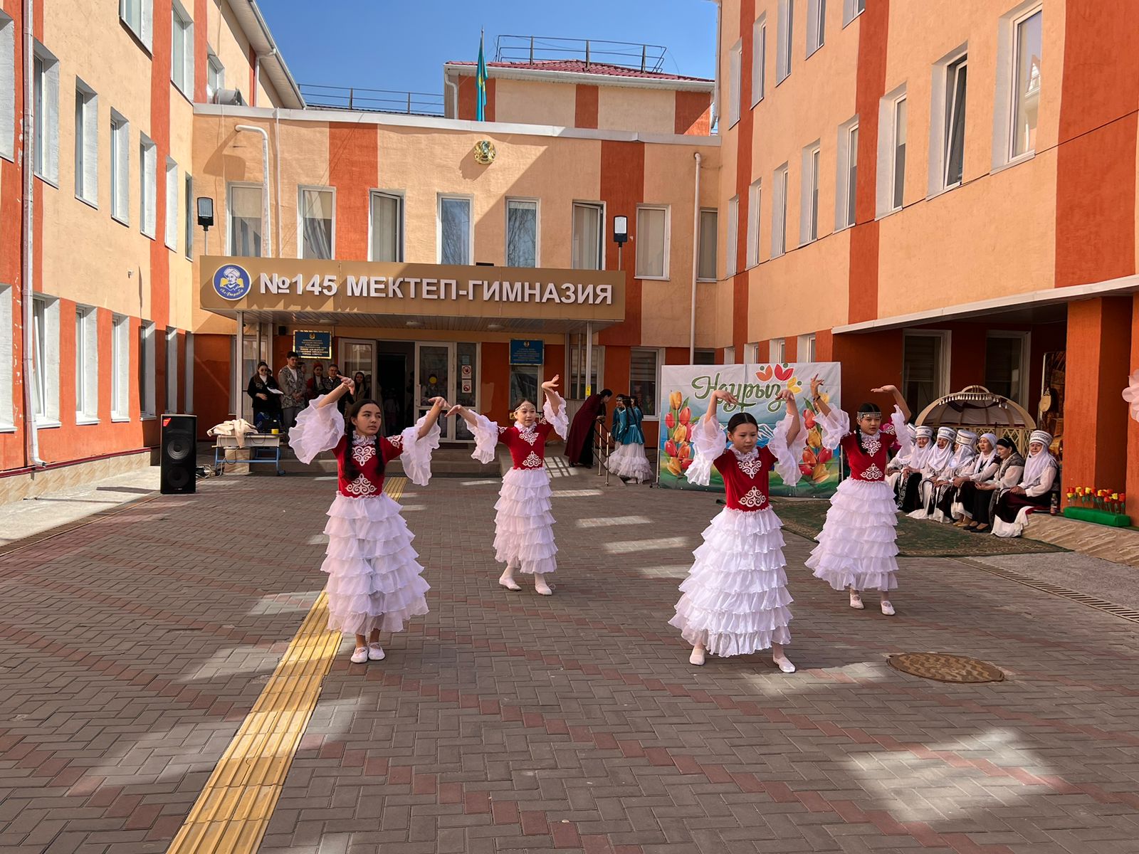 Мерекелік шара барысында әсем әндер шырқалып, мың бұралған бишілер көрерменге көтеріңкі көңіл күй сыйлады. Ұлттық киіммен сахнаға шыққан мектеп мұғалімдерінен құралған ансамбль Наурыз рухын сезіндіретін ән орындап, көпшіліктің ыстық ықыласына бөленді. Салтанатты кештің шымылдығы дәстүрлі шашумен ашылып, көрерменге ақ бата мен ақжарма тілектер жолданды.