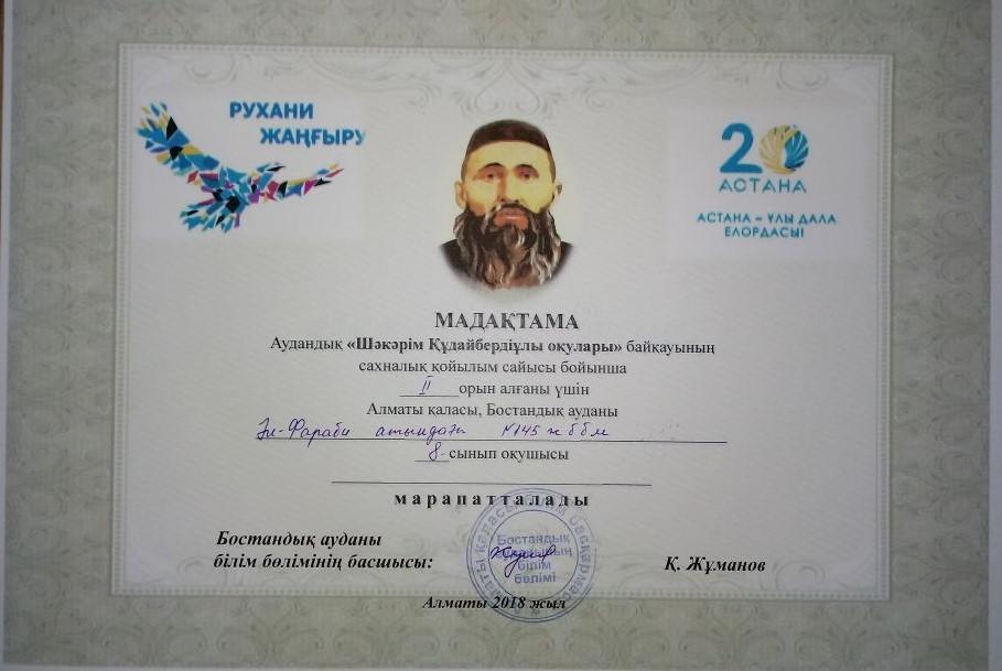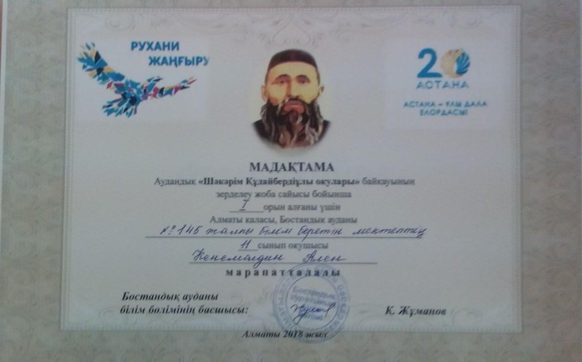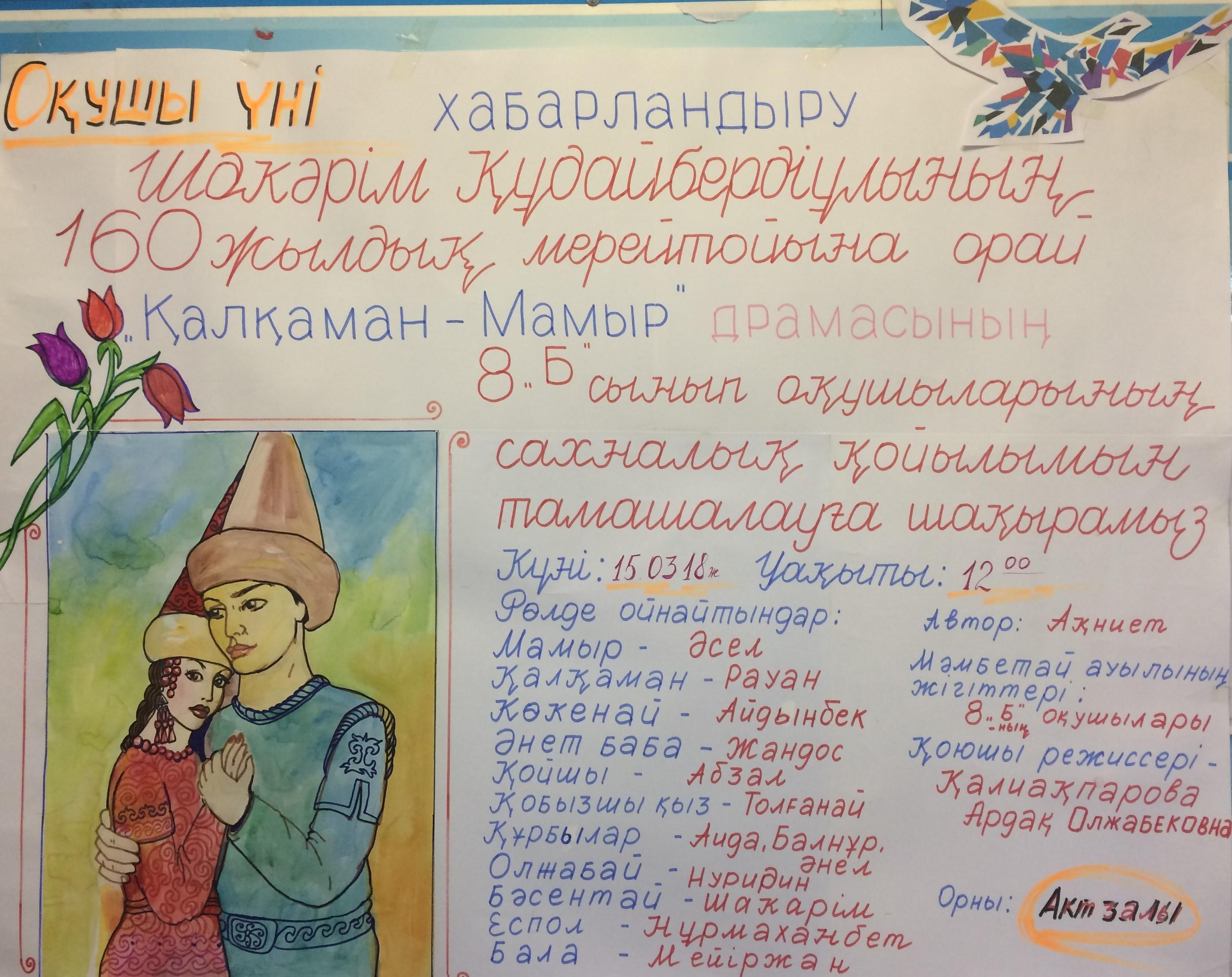 18 декабрь 2020 0 1 2 3 4 5 Шәкәрім Құдайбердіұлының 160жылдық мерейтойына арналған "Қалқаман-Мамыр" дастанын мектеп оқушыларынның сахналауындағы көріністер Осы беттің QR-коды:QR-код этой страницы: