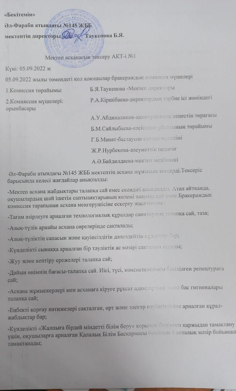 25 сентябрь 2022 0 1 2 3 4 5 Мектеп асханасын тексеру АКТ-і №1 Осы беттің QR-коды:QR-код этой страницы: