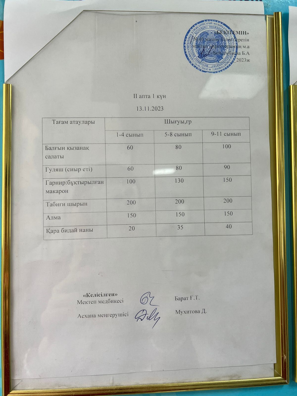 1 күндік ас мәзірі. ІІ апта 1 күн