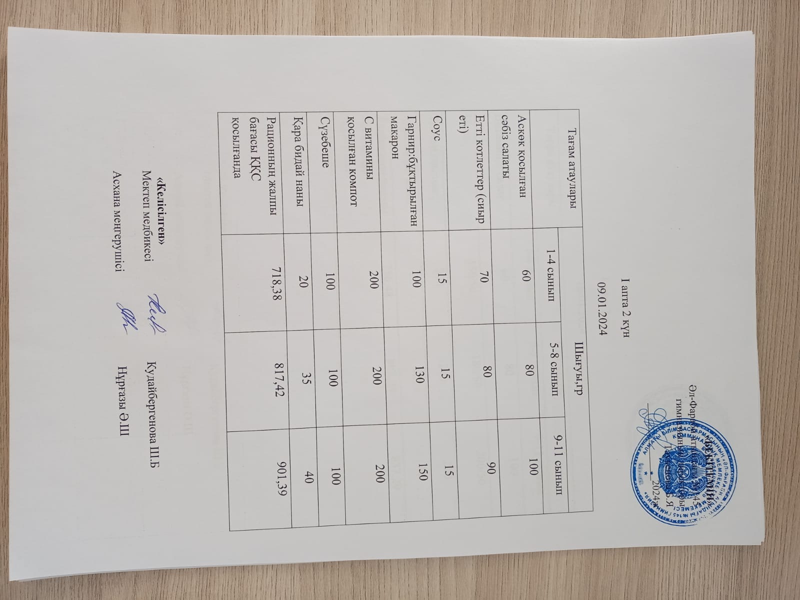 1 күндік ас мәзірі. ІІ апта 1 күн