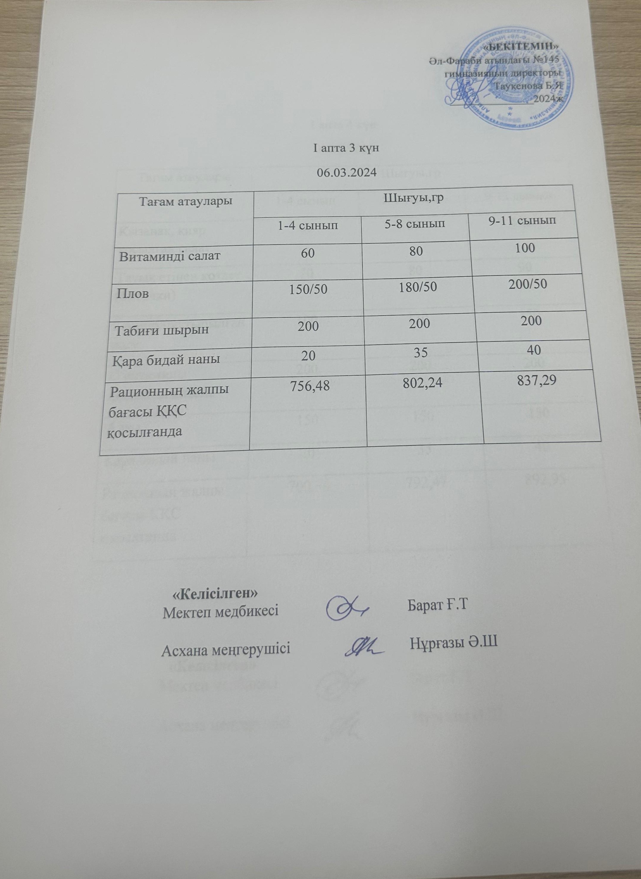 І күндік ас мәзірі І апта 3 күн