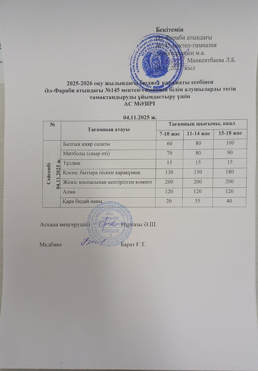 Ас мәзірі 04.11.2025