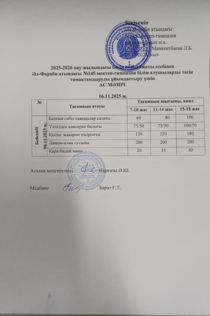 » Ас мәзірі 06.11.2025