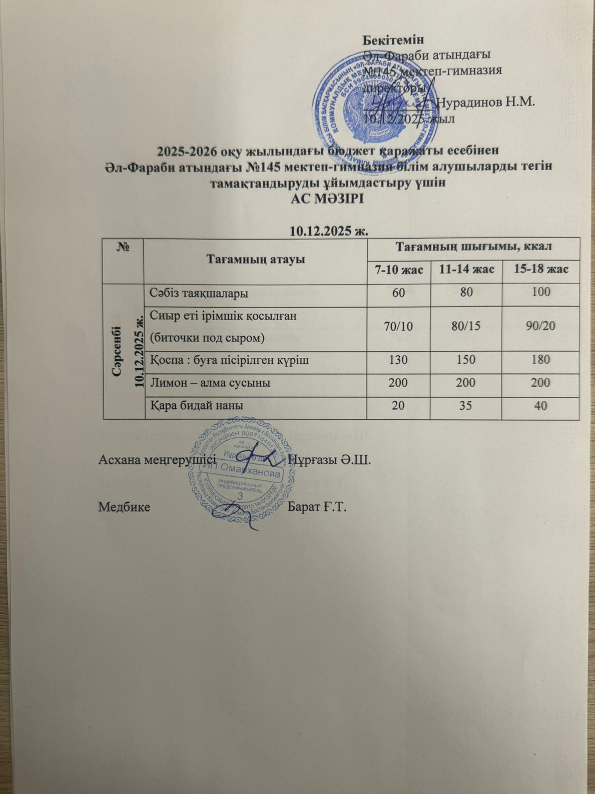 Ас мәзірі 10.12.2025